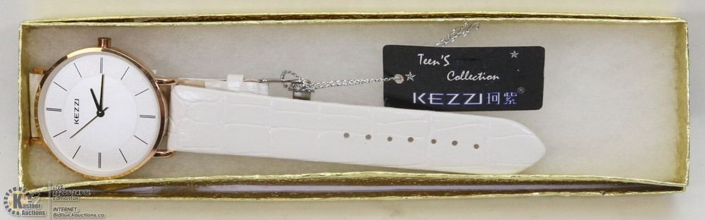 KEZZIE WATCH GENUINE LEATHER WHITE STRAP.
