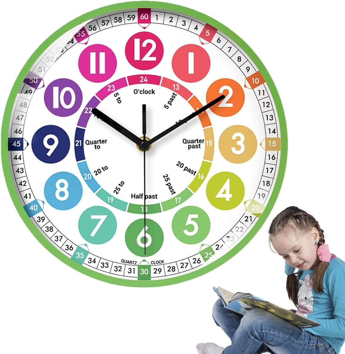 KIDS LEARNING CLOCK - 10 INCH. EDUCATIONAL NON-TICKING TIME. TEACHING CLOCK, ANALOG KIDS CLOCK COLORFUL.