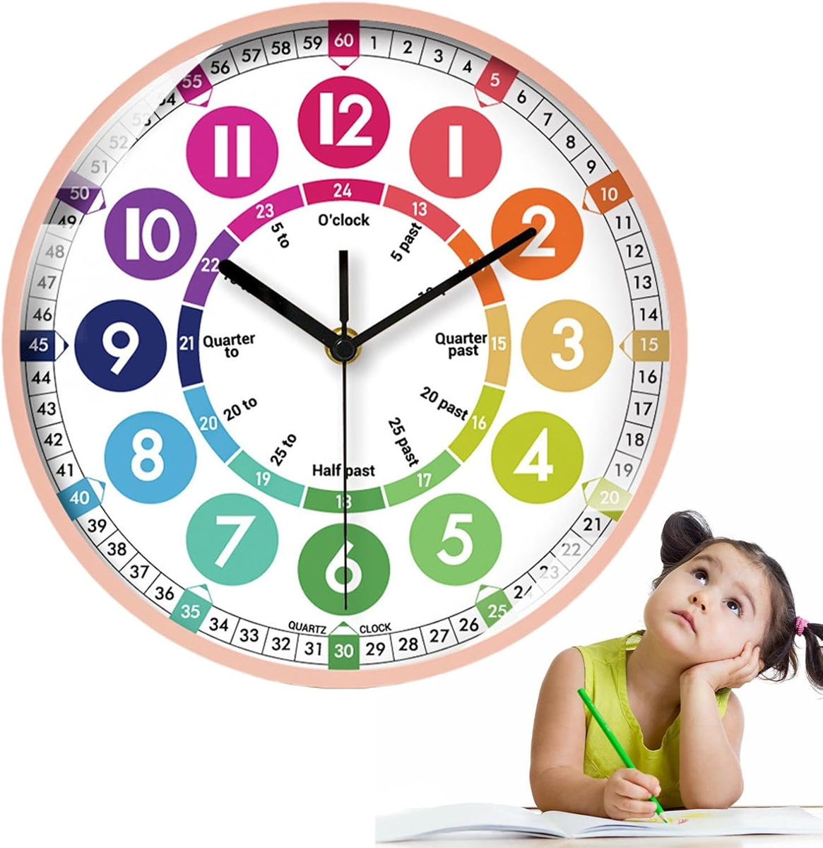 KIDS LEARNING CLOCK - 10 INCH. EDUCATIONAL NON-TICKING TIME. TEACHING CLOCK, ANALOG KIDS CLOCK COLORFUL.