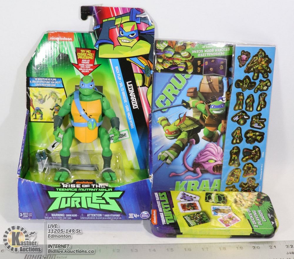 TEENAGE MUTANT NINJA TURTLES - PLAYING DECK OF CARDS, STICKERS, AND LEONARDO FIGURING