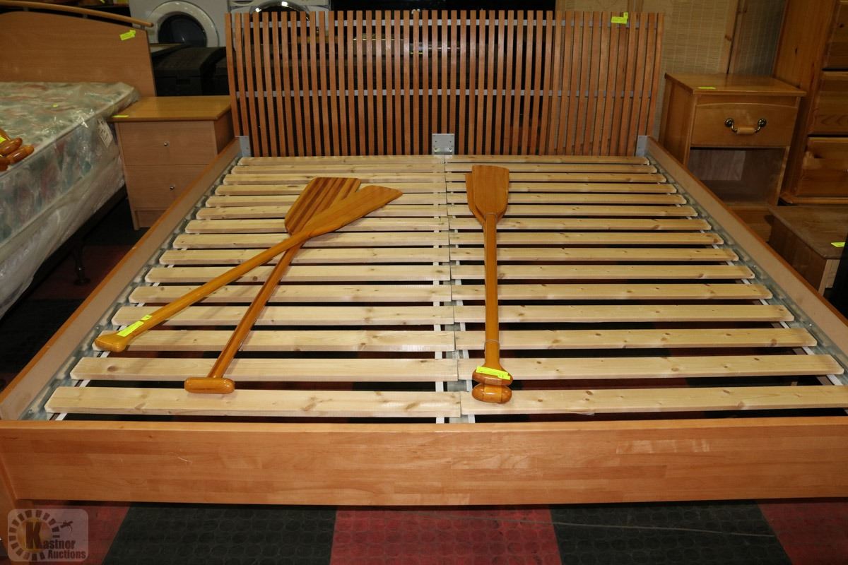 KINGSIZE WOOD FRAMED BED WITH NIGHT TABLE