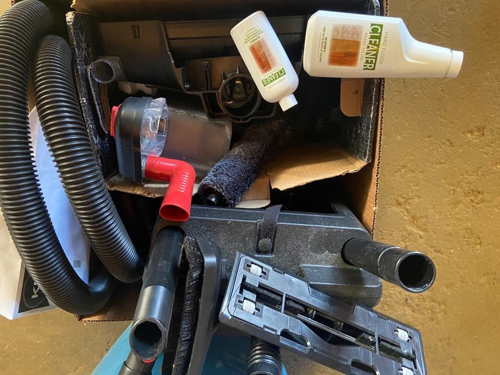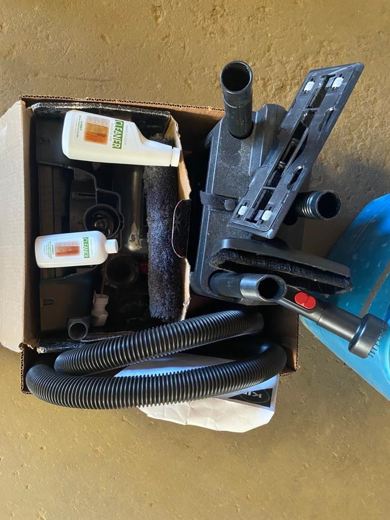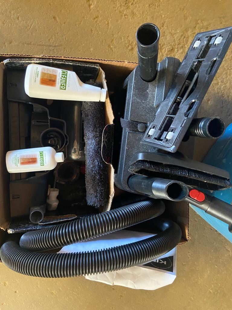 SYSTEM INCL. WORKING UPRIGHT ADJUSTABLE HEIGHT VAC WITH HEPA FILTRATION, COMPLETE WITH LARGE BOX OF KIRBY ACCESSORIES INCL. KIRBY MULTI-SURFACE SHAMPOO SYSTEM ATTACHMENTS, WALL HANG ATTACHMENT, SORTER, ALL ATTACHMENT'S OWNERS/USER MANUALS