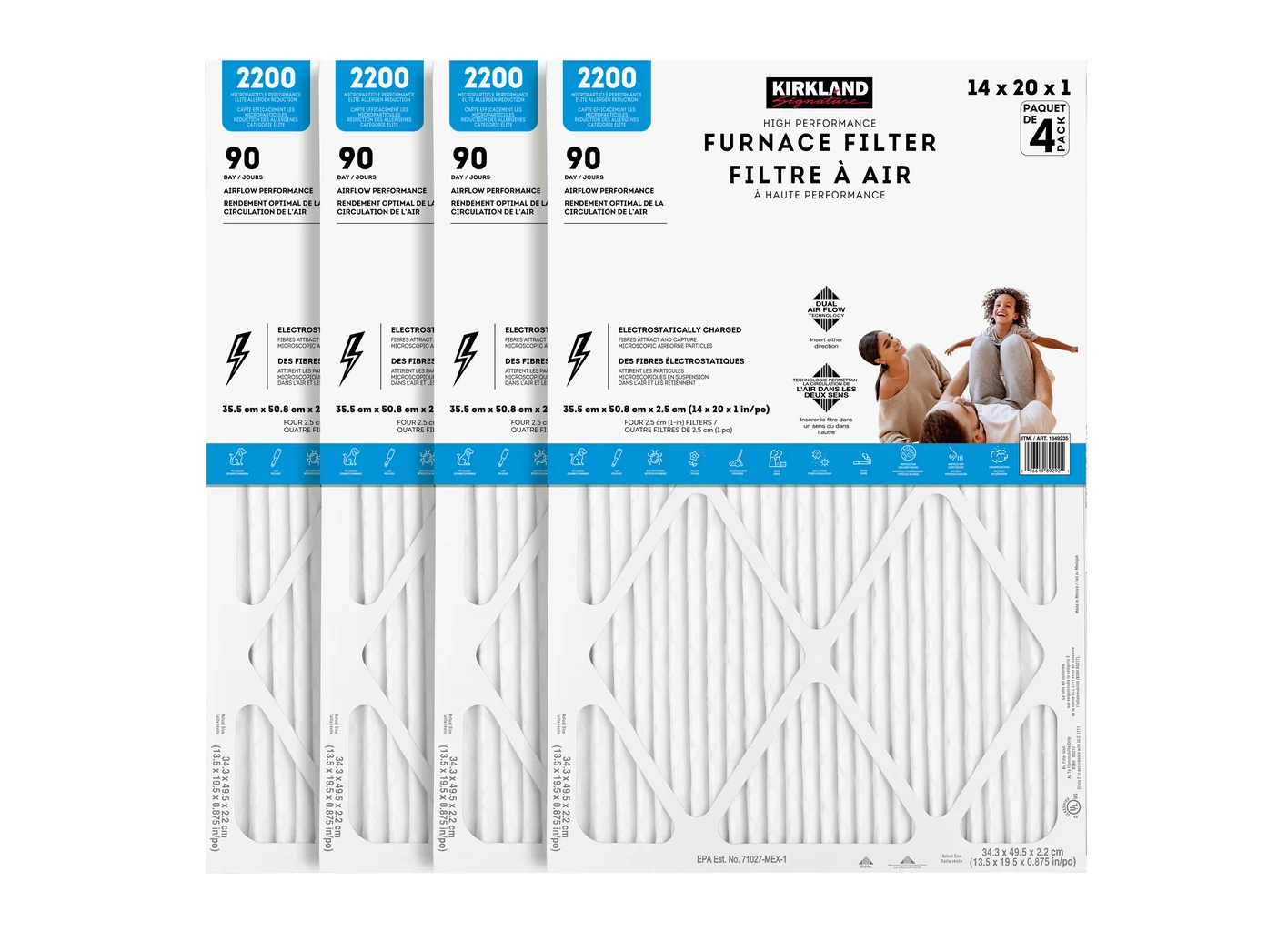 KIRKLAND SIGNATURE 2200 HIGH PERFORMANCE FURNACE FILTERS 40.6 X 63.5 X 2.5 CM -SU