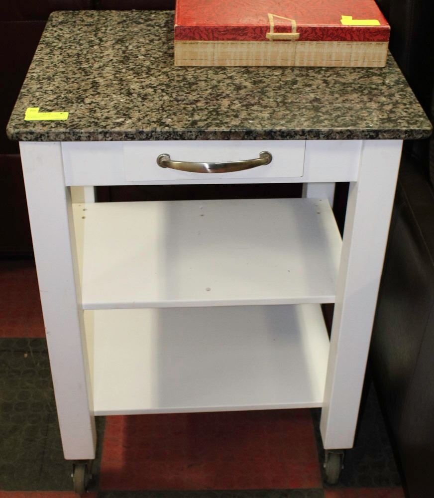 KITCHEN CABINET W/ MARBLE TOP ON WHEELS