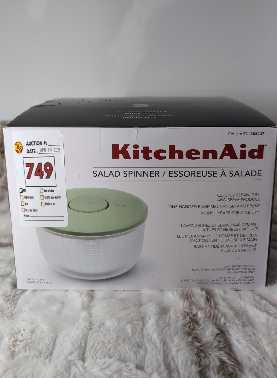 KITCHENAID - UNIVERSAL SALAD SPINNER WITH REMOVABLE, COLANDER AND ONE HANDED PUMP MECHANISM -N