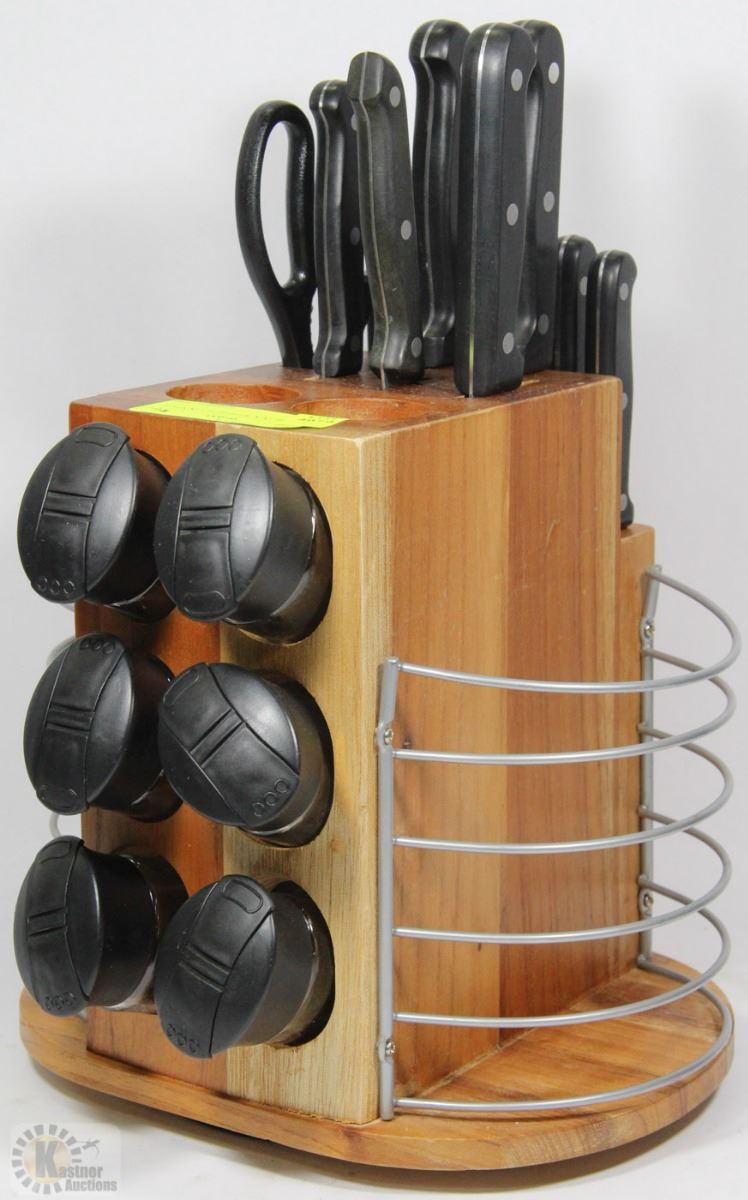 KNIFE BLOCK WITH BUILT IN SPICE RACK