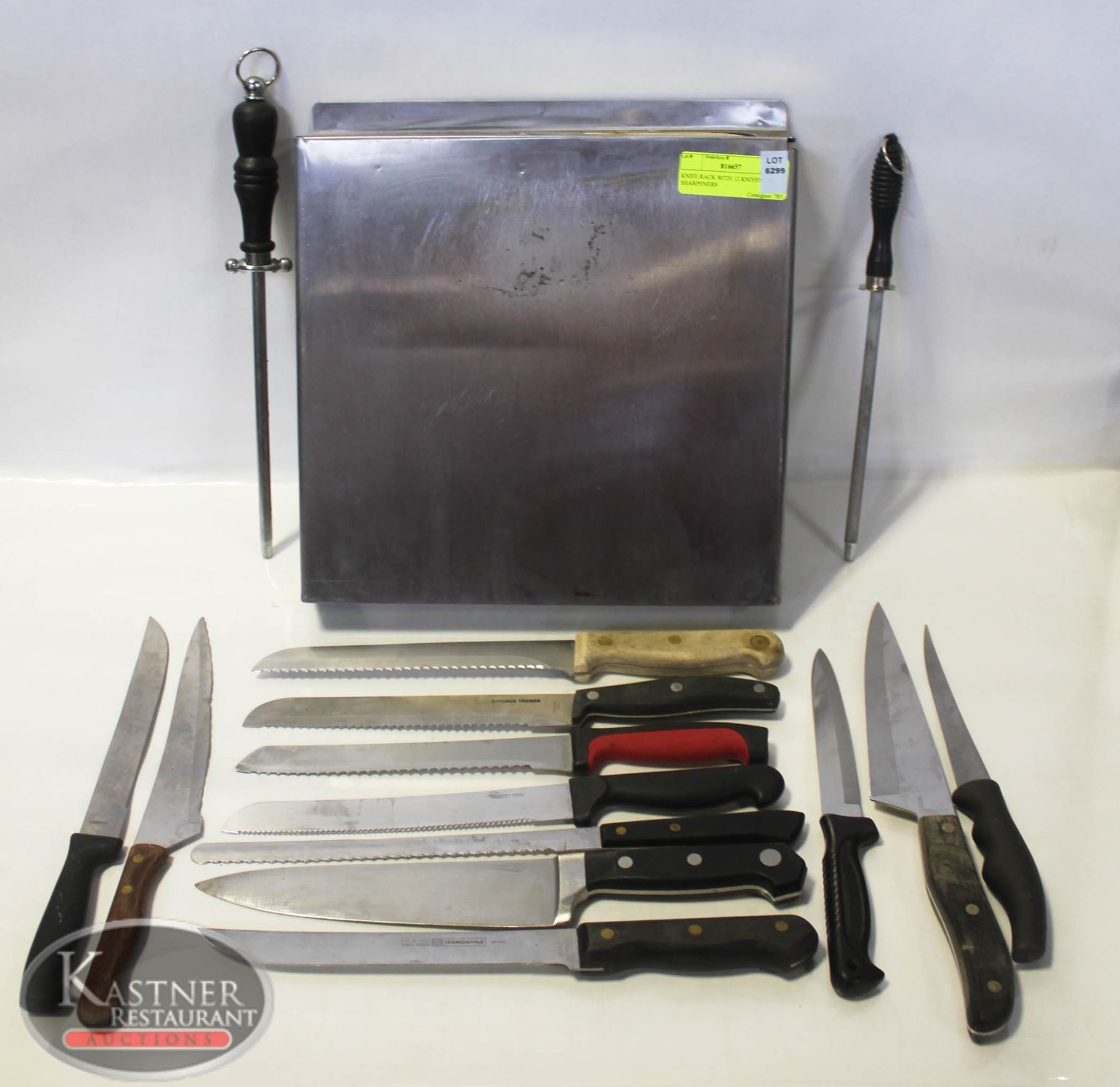 KNIFE RACK WITH 12 KNIVES AND SHARPENERS