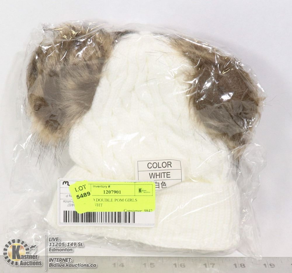 KNITTED DOUBLE POM GIRLS BEANIE WHT