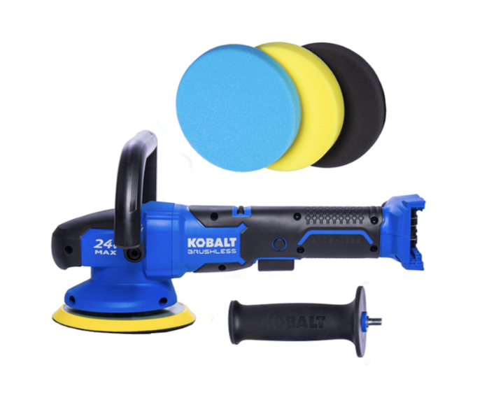 KOBALT 24-V MAX BRUSHLESS MOTOR 6-IN POLISHER - 3 PADS INCLUDED - BLACK AND BLUE - BARE TOOL WITHOUT BATTERY