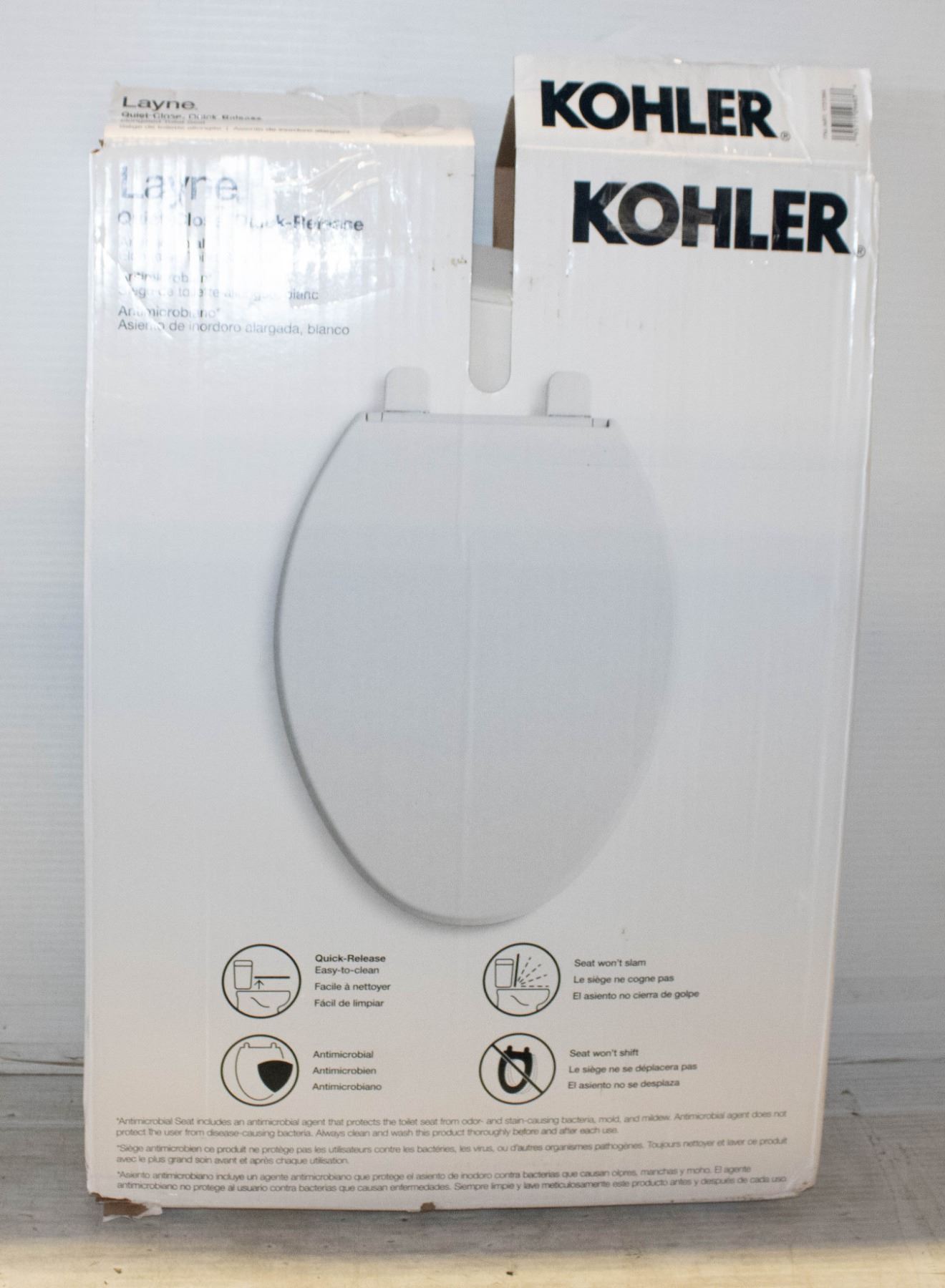 THE LAYNE TOILET SEAT IS COMPATIBLE WITH A WIDE VARIETY OF ELONGATED ONE- AND TWO-PIECE TOILETS. HAS QUIET-CLOSE TECHNOLOGY THAT PREVENTS SLAMMING LID