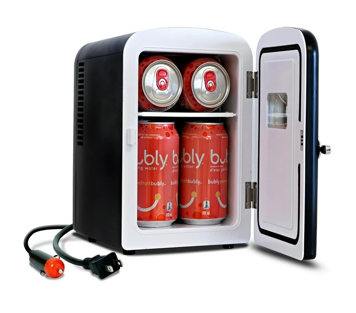 KOOLATRON 4L RETRO PORTABLE MINI FRIDGE 12V DC 110V 6 CAN COOLER BLACK