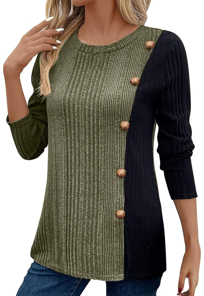 KOUFLAND LIGHTWEIGHT KNIT SWEATERS LONG SLEEVE TOPS FOR WOMEN CREW NECK PULLOVER TUNICS SWEATERS BUTTONS FRONT SLIT FALL | Category: Home Goods & Decor