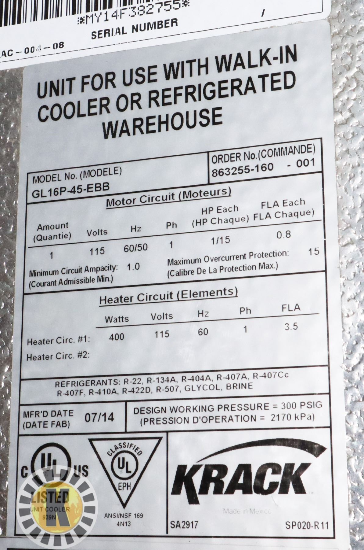 IN NEW CONDITION. MODEL GL16P-45-EBB