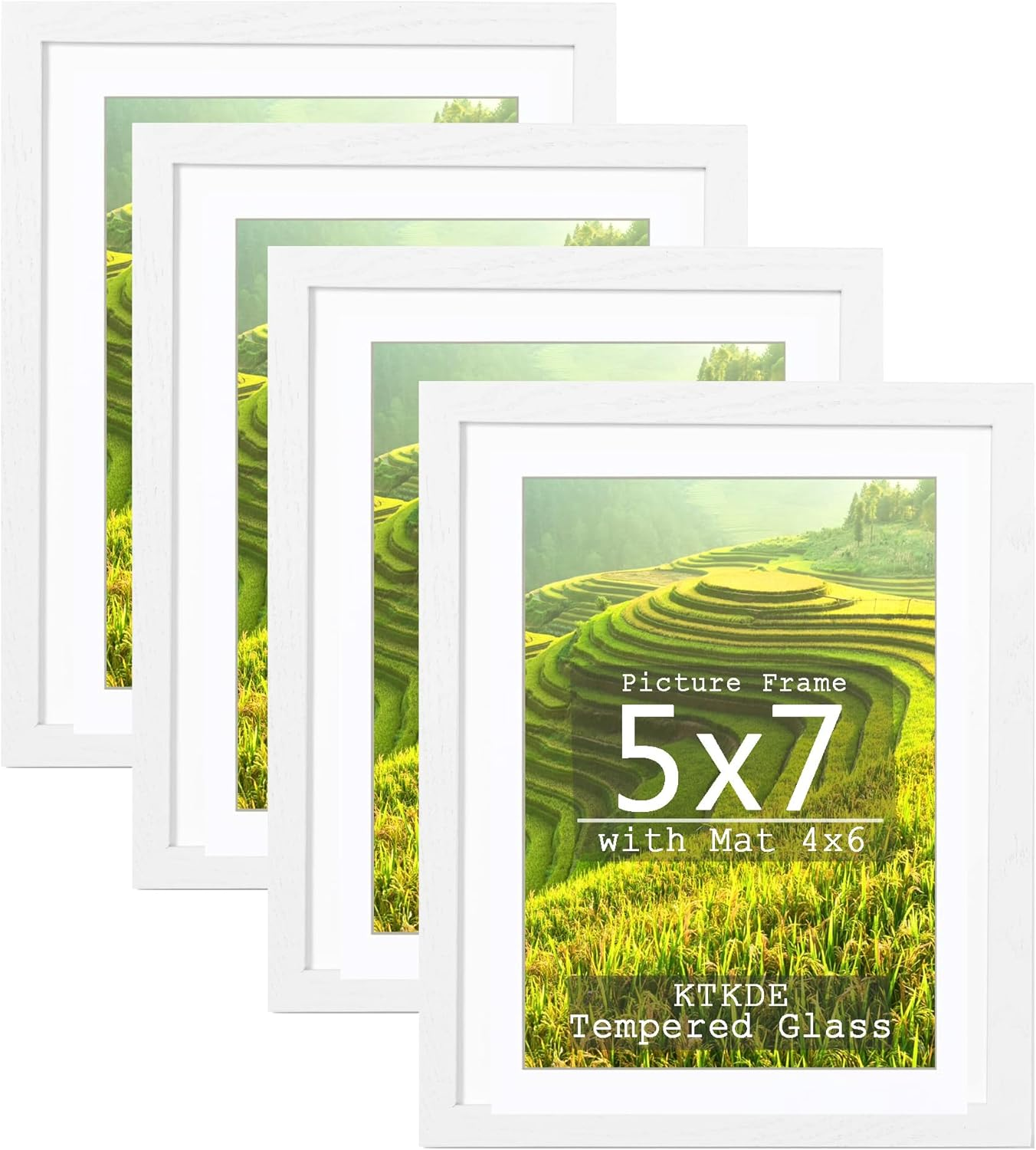 KTKDE 5X7 PICTURE FRAME SET OF 4,WHITE WOODEN FRAME 4X6 MAT OR 5X7 WITHOUT MAT, TEMPERED GLASS,4 BY 6 WHITE SAMLL FRAME FOR HOME STUDIO GALLERY FOR HOME FRIENDS WEDDING BEST GIFT | Category: Home Goods & Decor