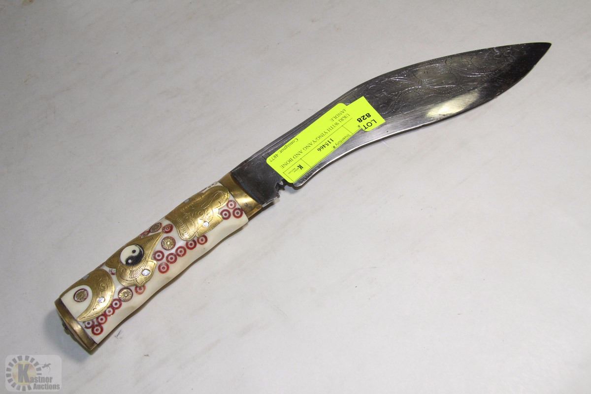 KUKRI WITH YING/YANG AND BONE HANDLE