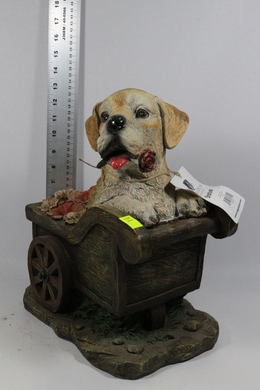 LABRADOR PUPPIE IN CART GARDEN STATUETTE