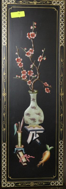 LACQUER WALL PANEL W/ SOAPSTONE DECORATION