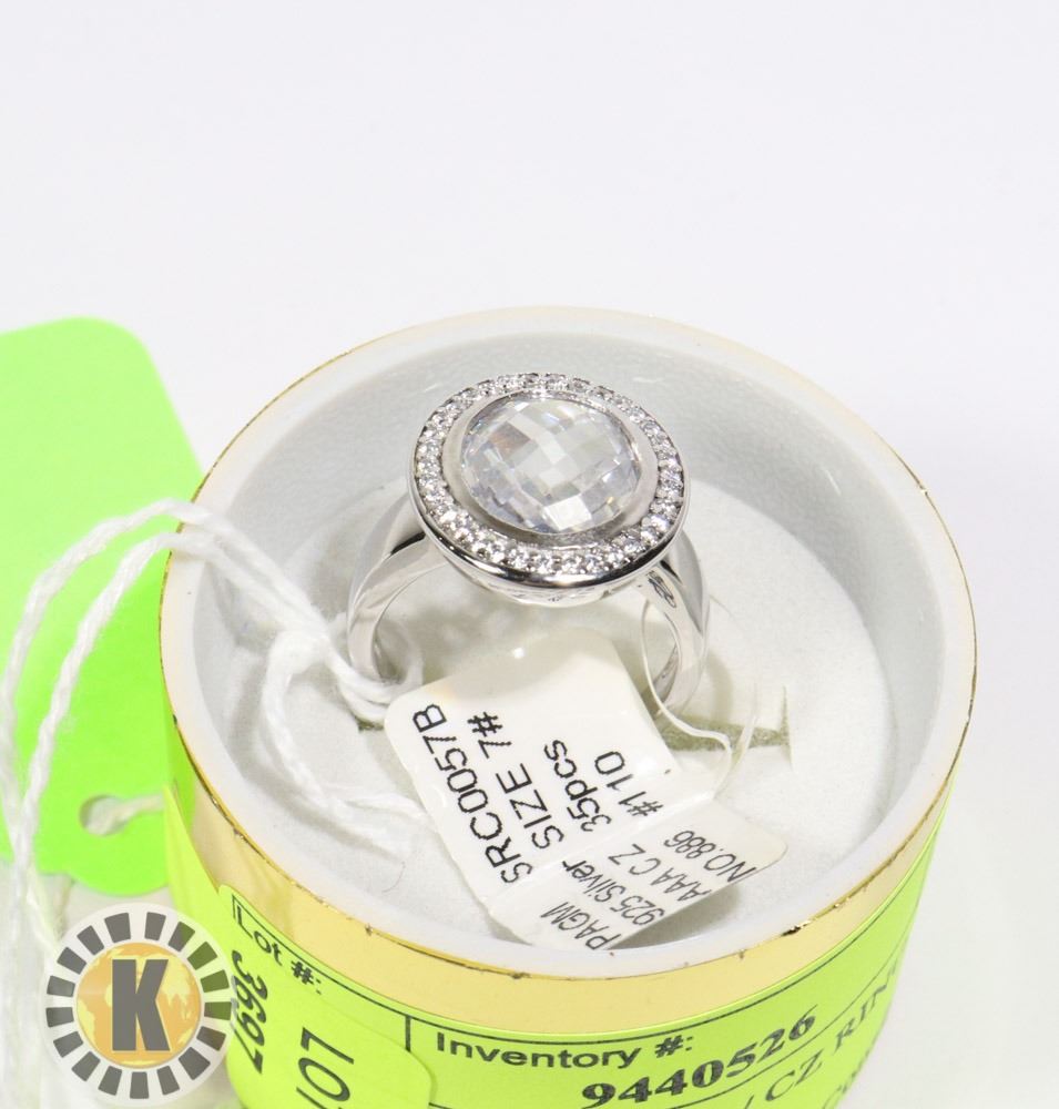 NEW. LARGE OVAL 11 X 9 MM SHAPED CZ WITH A HALO OF CZ/S SET IN SOLID 925 SILVER. SIZE 7. CAN BE RESIZED. 8.1 GRAMS.***ITEM(S) LOCATED IN LETHBRIDGE ALBERTA