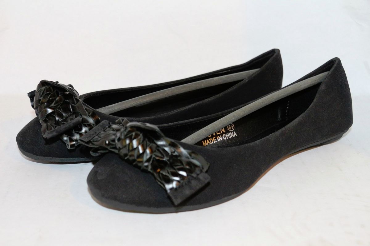 LADIES BLACK FLATS W/ WOVEN BOW ACCENT SIZE 6