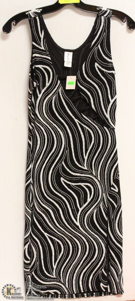LADIES BLACK & WHITE SPARKLE V-NECK DRESS - SZ MED