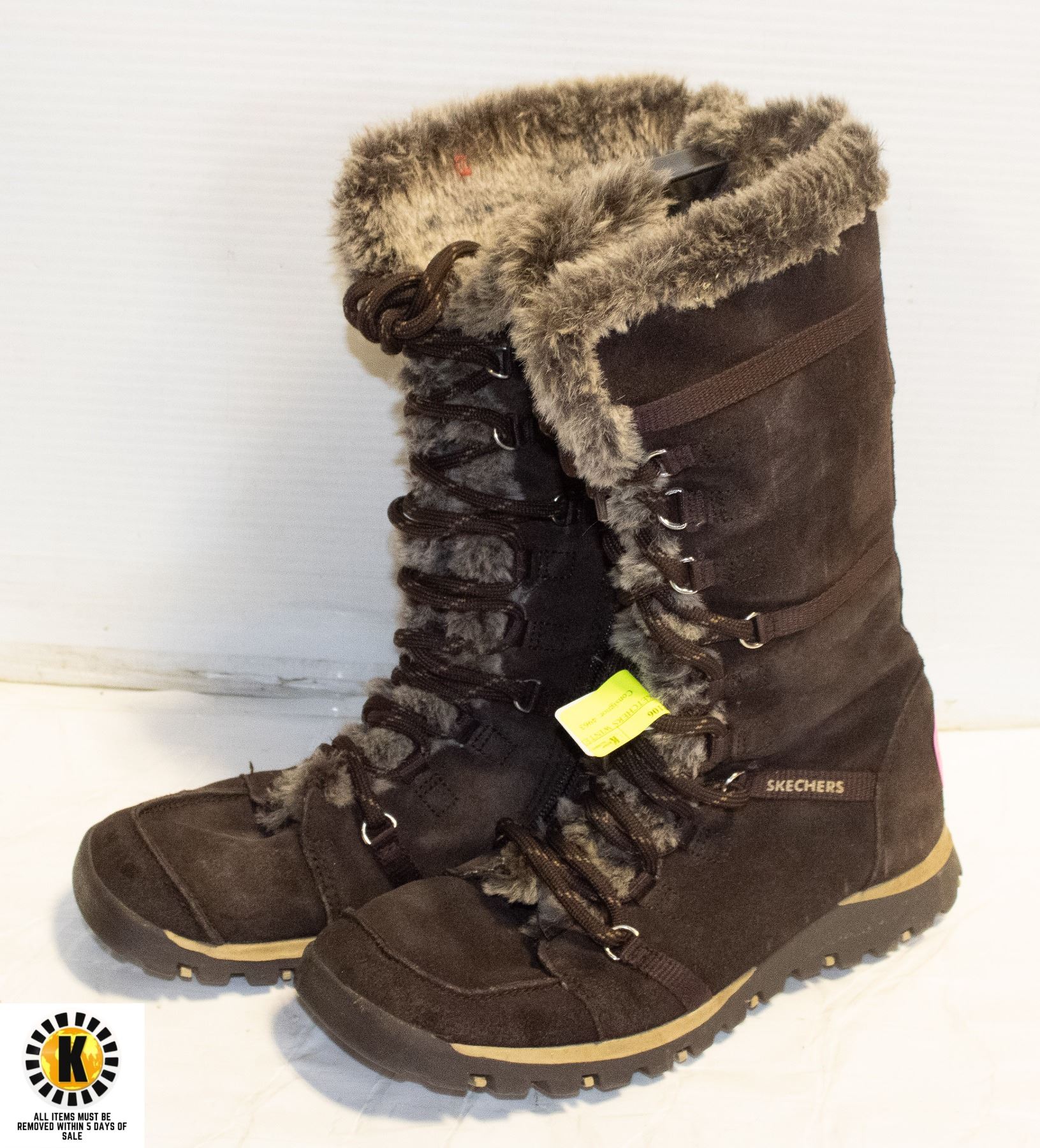 LADIES BROWN SKETCHERS WINTER BOOTS 8