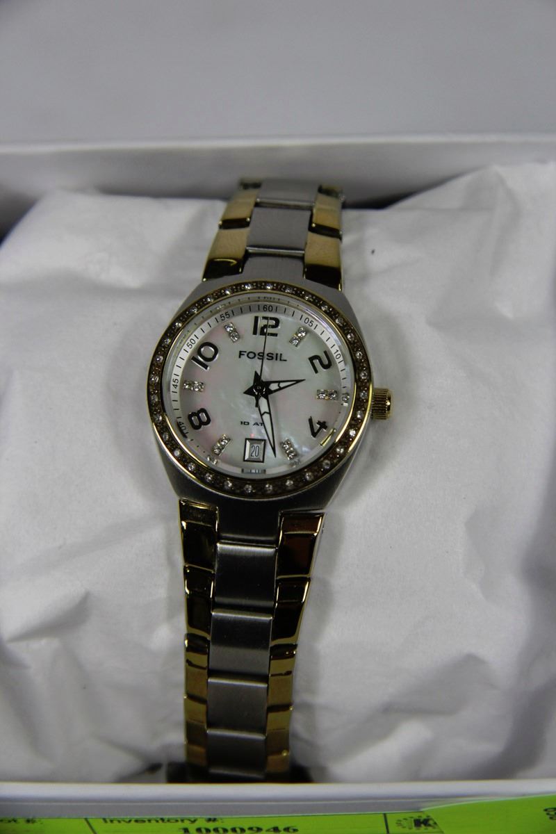 LADIES FOSSIL WATCH WHITE MOTHER OF PEARL - 2 TONE