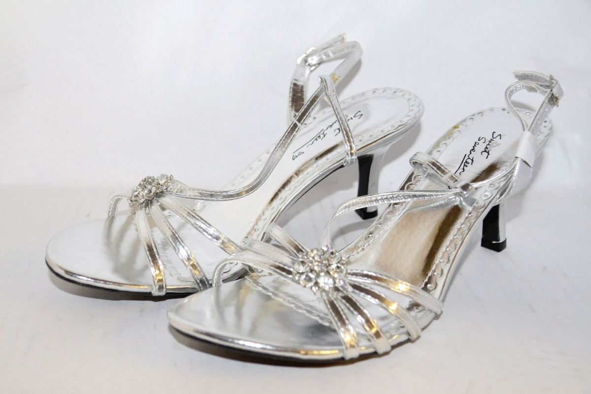LADIES SILVER OPEN TOE HIGH HEELS SIZE 7.5