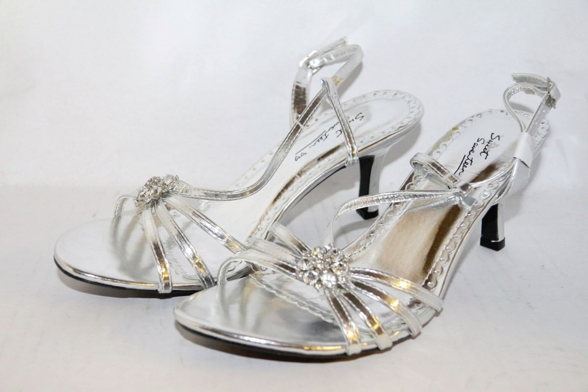 LADIES SILVER OPEN TOE HIGH HEELS SIZE 7