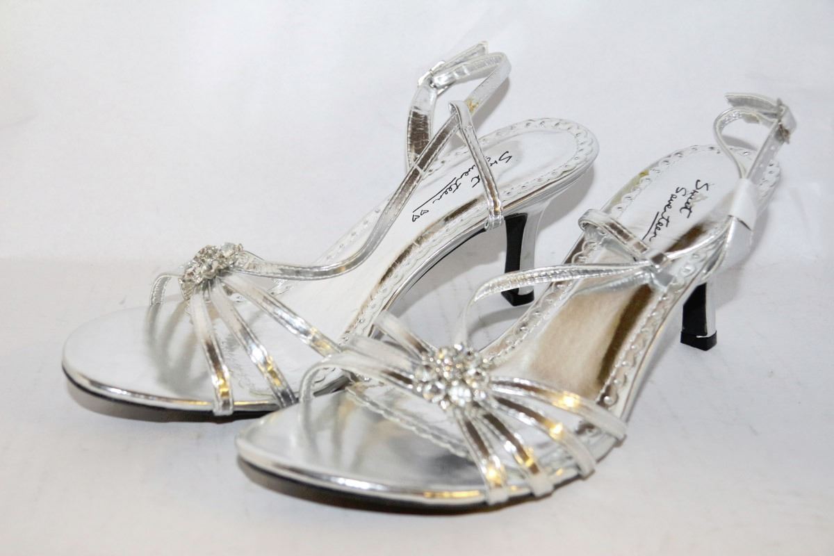 LADIES SILVER OPEN TOE HIGH HEELS SIZE 8.5