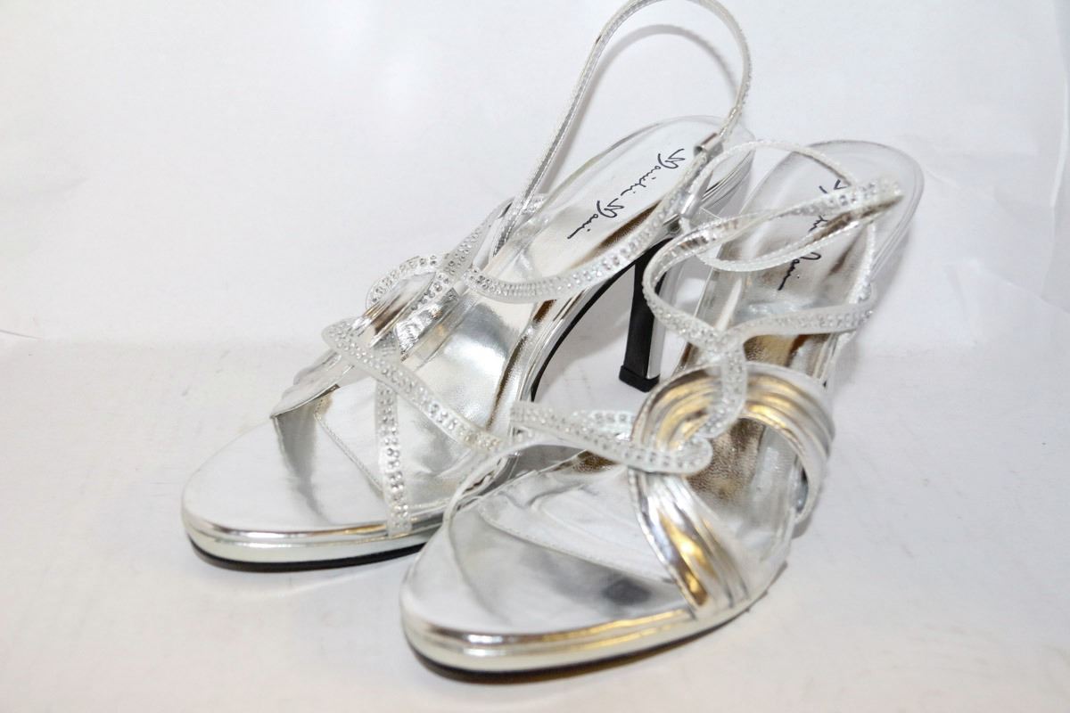 LADIES SILVER OPEN TOE SLIP ON HIGH HEEL SIZE 7