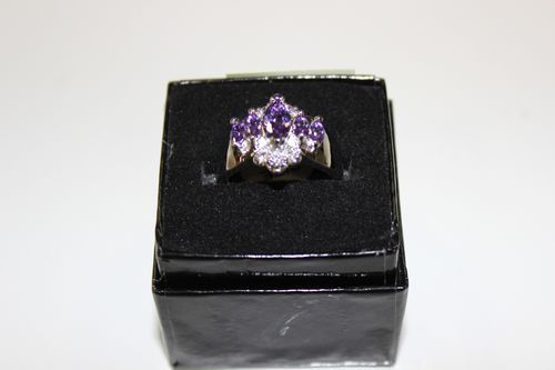 LADIES STAMPED 925 SILVER LAB PINK TOPAZ RING ON