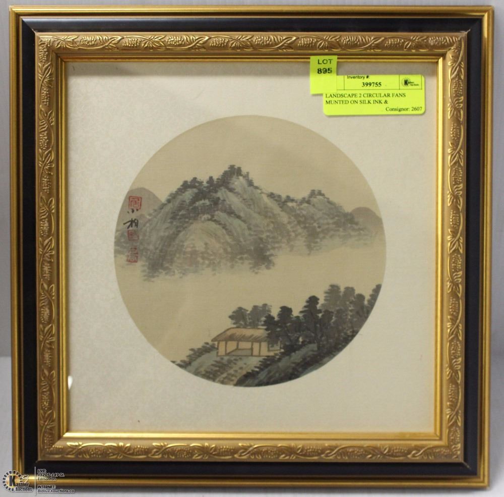 LIGHT COLORS ON SILK 10"X10" 7" DIAMETER SIGNED, SEALS OF ARTISTS AND COLLECTORS