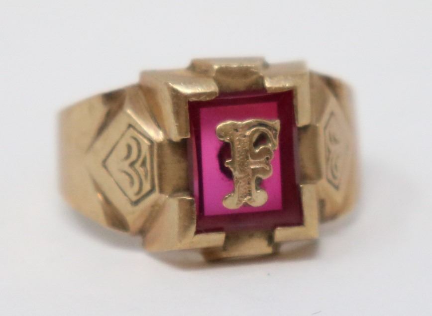 LARGE 10K GOLD RING WITH MONOGRAM F MADAME RAC