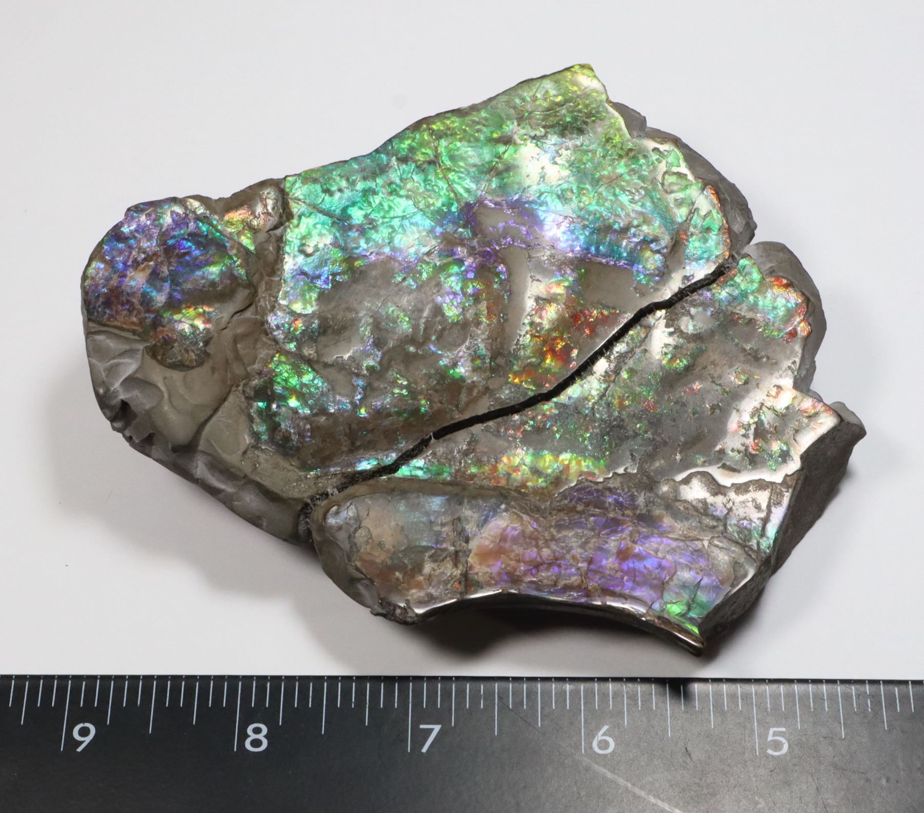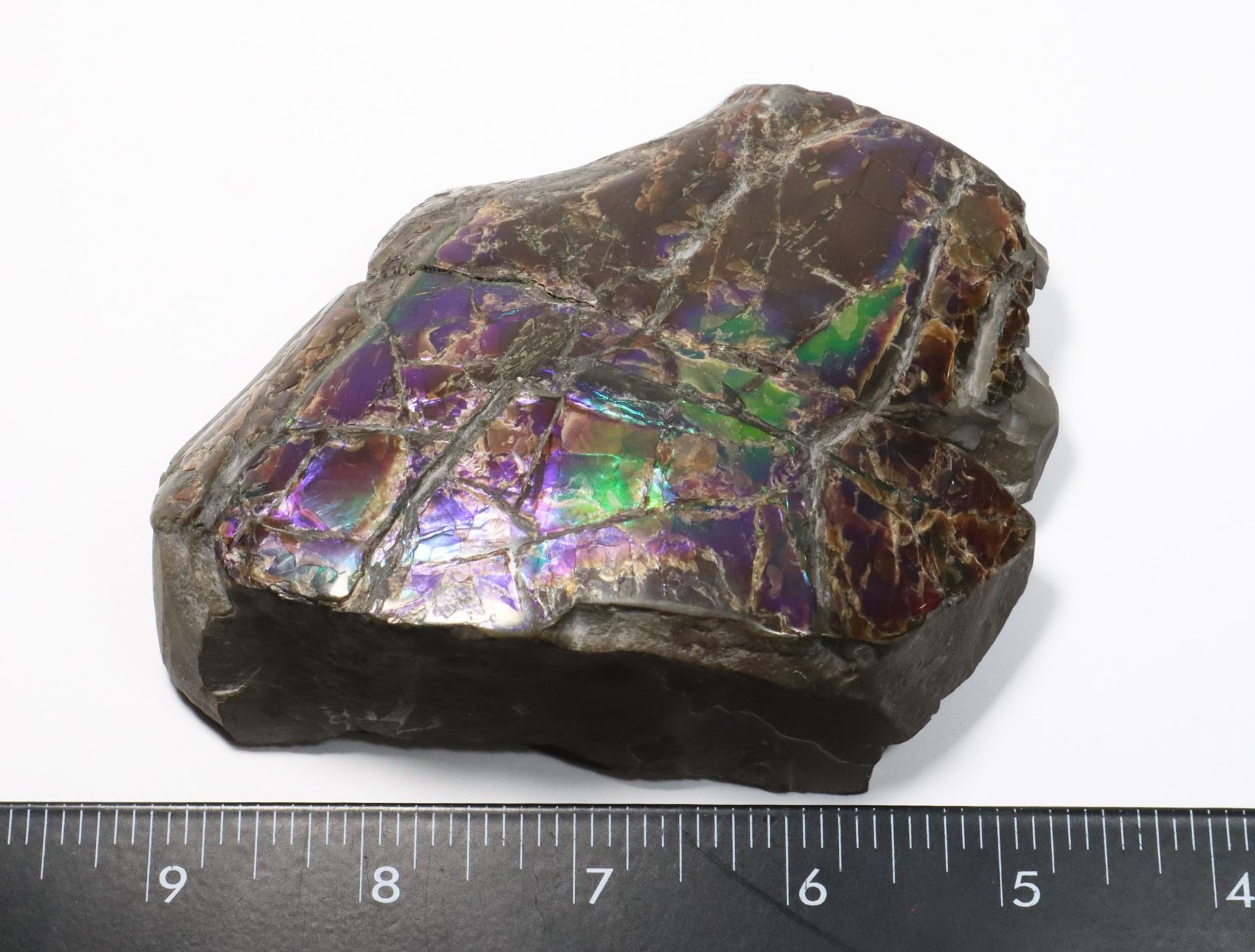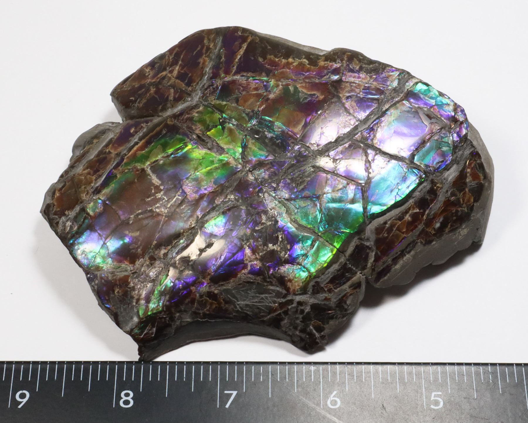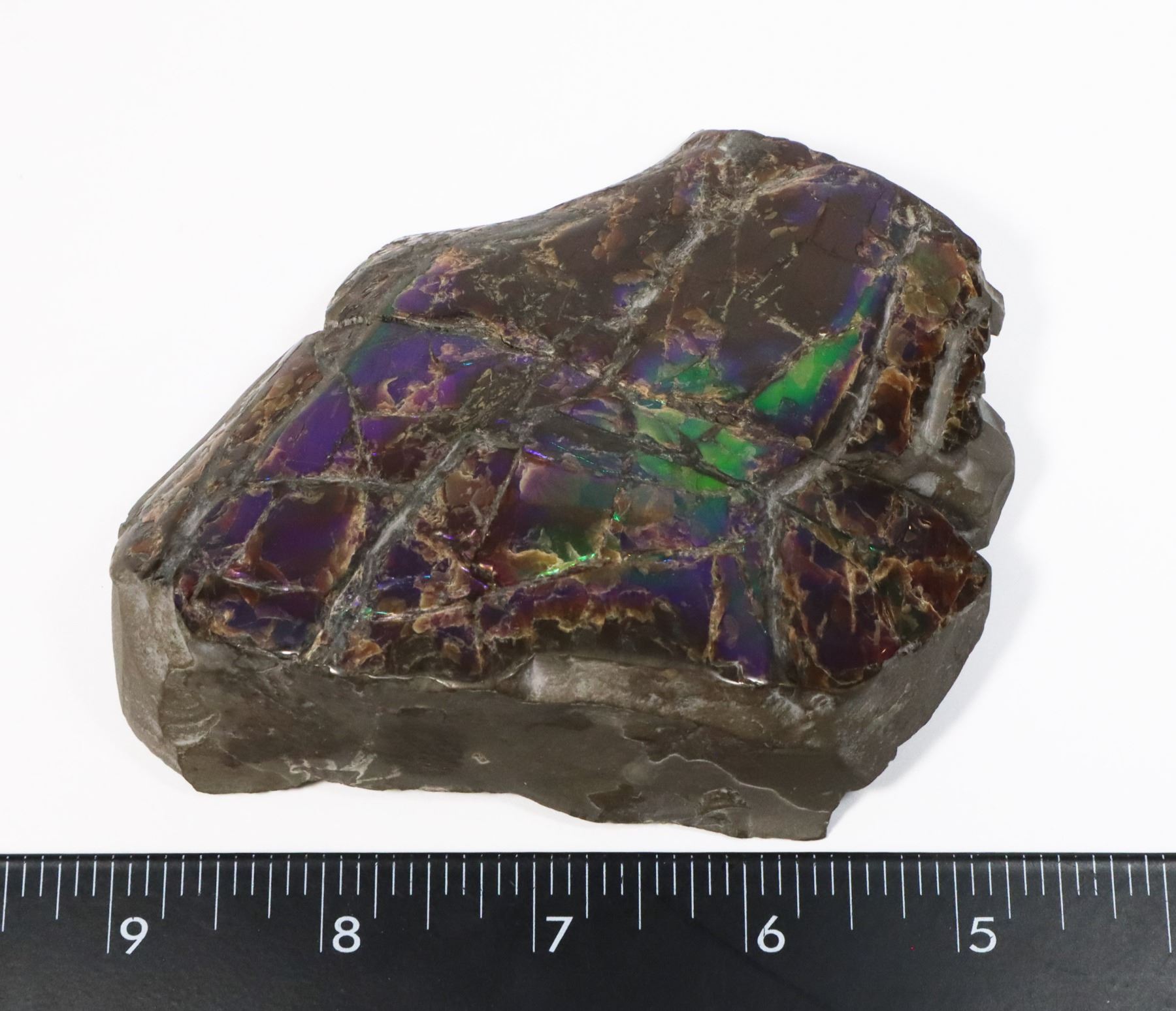 LARGE 5" X 4" AMMOLITE GEM STONE WITH BLUE, PURPLE