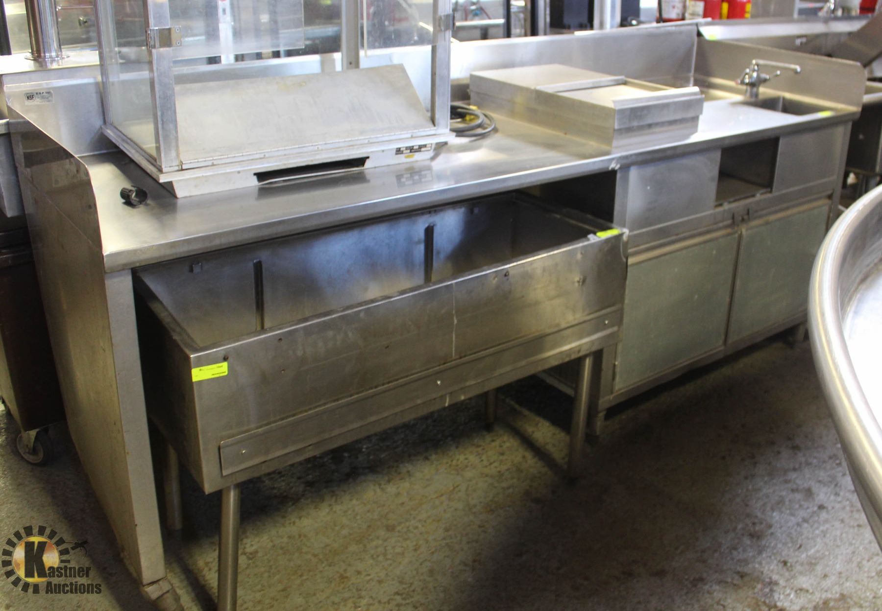 SINK WELL, RINSING SINK & DRIP TRAY DRAIN. NSF APPROVED. 96" X 29" X 36-1/2" W/ 6" BACKSPLASH. COMMERCIAL SERVICE.