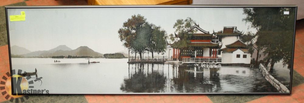 LARGE ANTIQUE ASIAN TAPESTRY, FRAMED