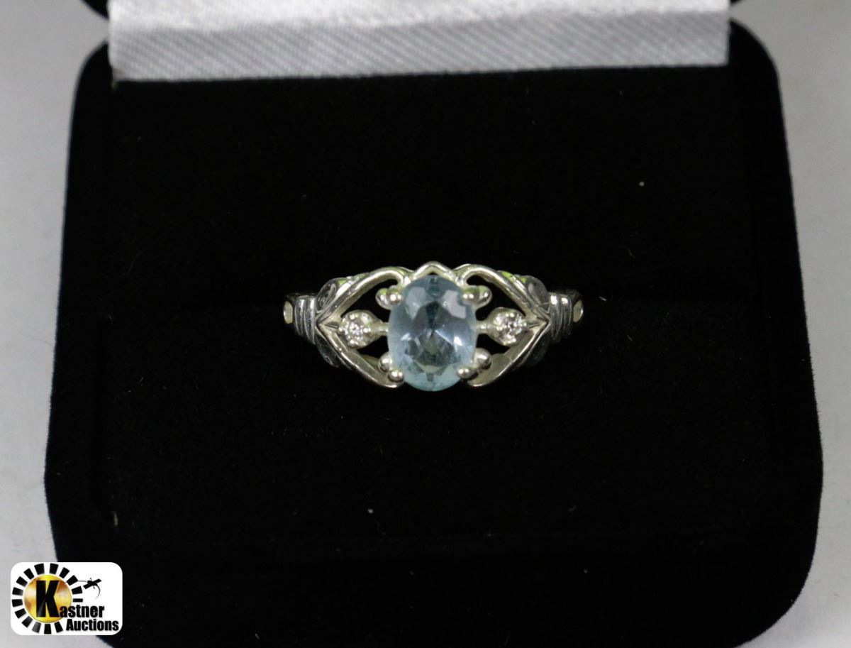 LARGE AQUAMARINE .925 SILVER RING - SIZE 7