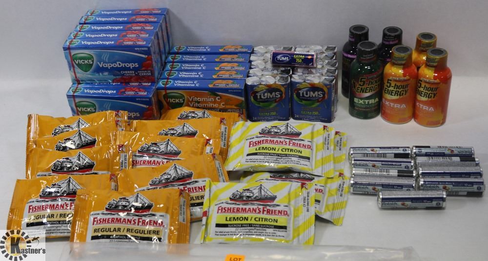 FISHERMANS FRIEND, ROLAIDS + TUMS & 5 HR ENERGY DRINKS.