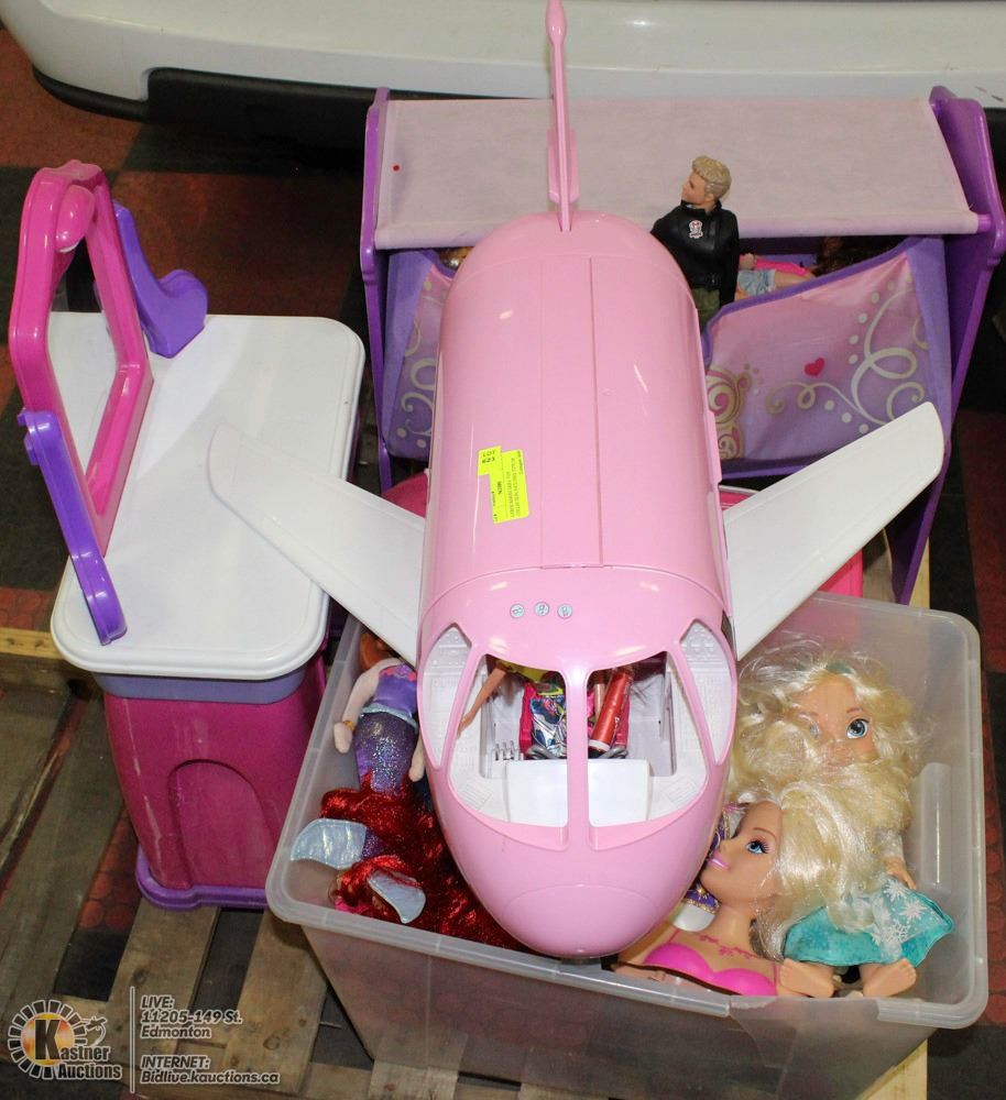 DOLLS & HORSES, PLANE, MOTORHOME, LITTLE DOLL BED AND BARBIE VANITY