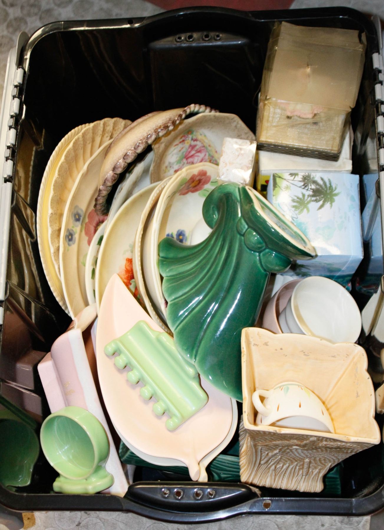 LARGE BIN ASSORTED VINTAGE CHINA AND COLLECTIBLES