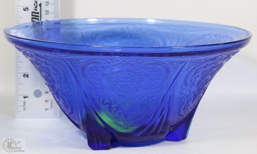LARGE BLUE BOWL WITH ROSE DESIGN