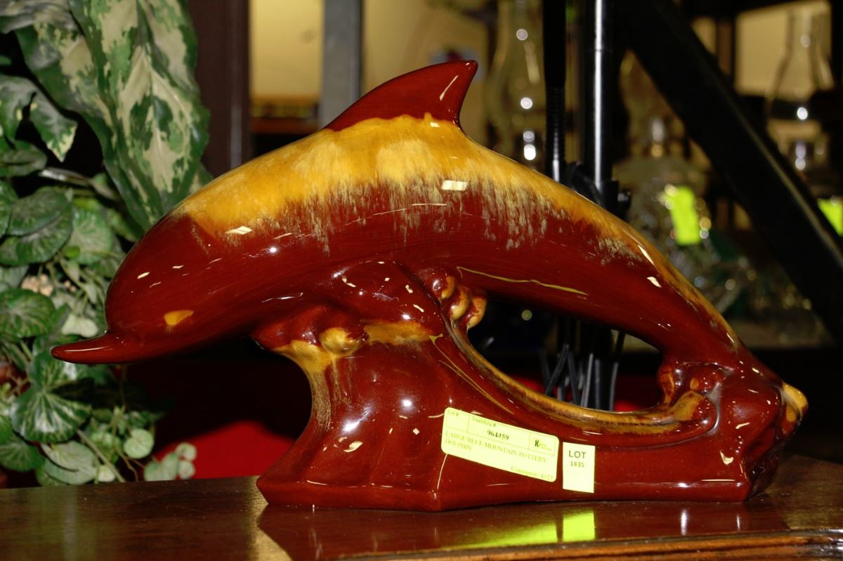 LARGE BLUE MOUNTAIN POTTERY DOLPHIN
