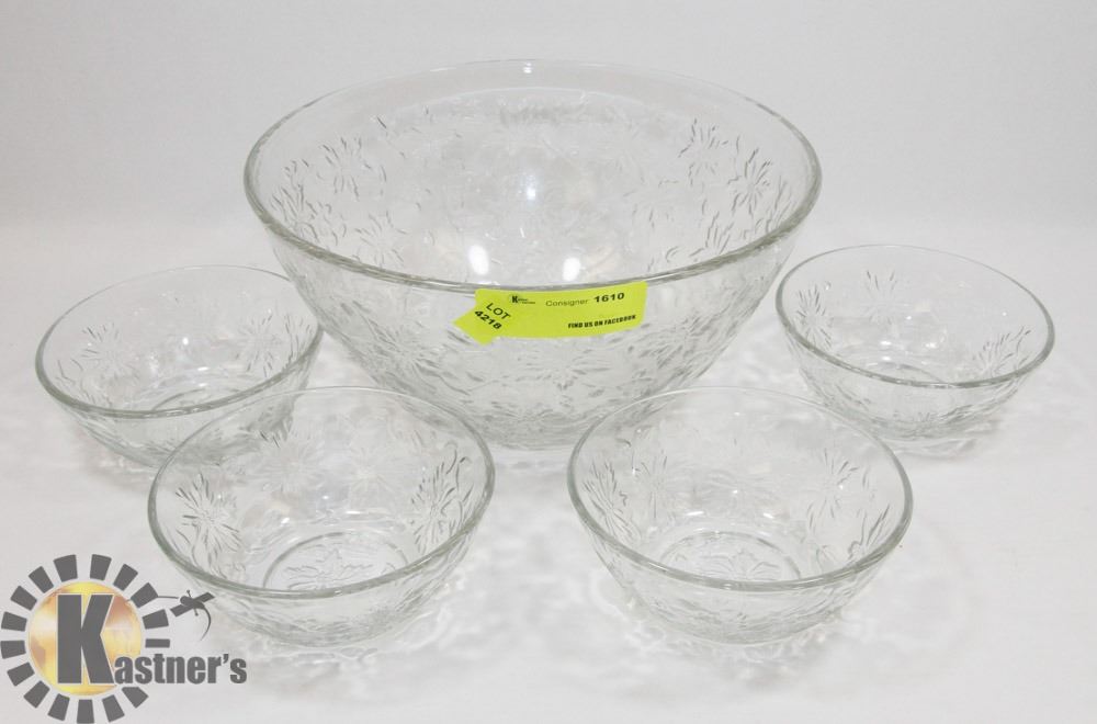 LARGE BOWL WITH 4 MATCHING SMALLER BOWLS