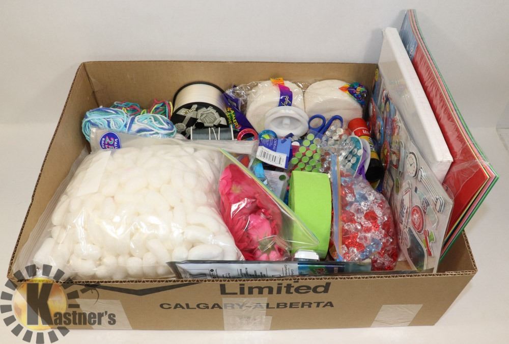 LARGE BOX FULL OF ARTS & CRAFTS ITEMS -