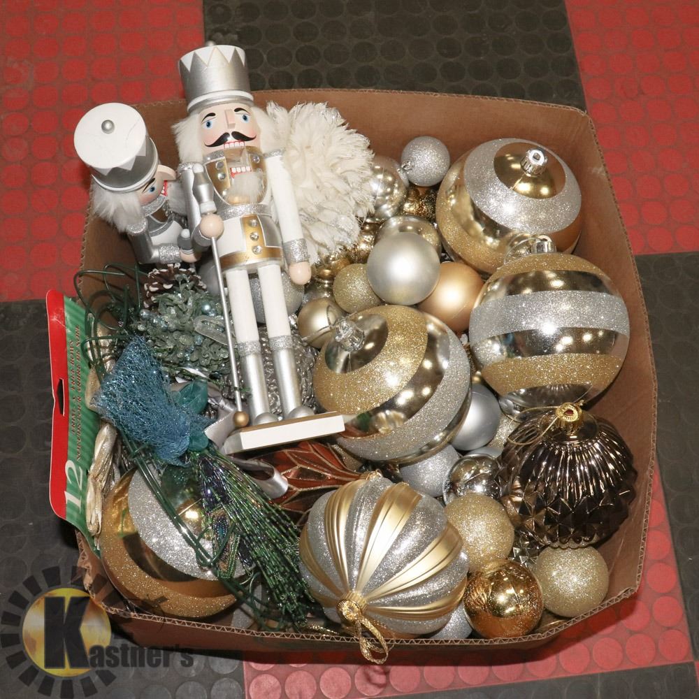 2 NUT CRACKER DECOR, LOTS OF CHRISTMAS TREE DECORATIONS, ETC. - GENERAL SEASONAL