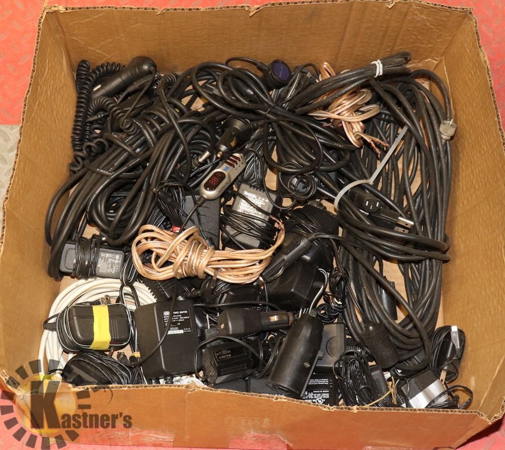 LARGE BOX FULL OF MEDIA/AC ADAPTERS, 12 V
