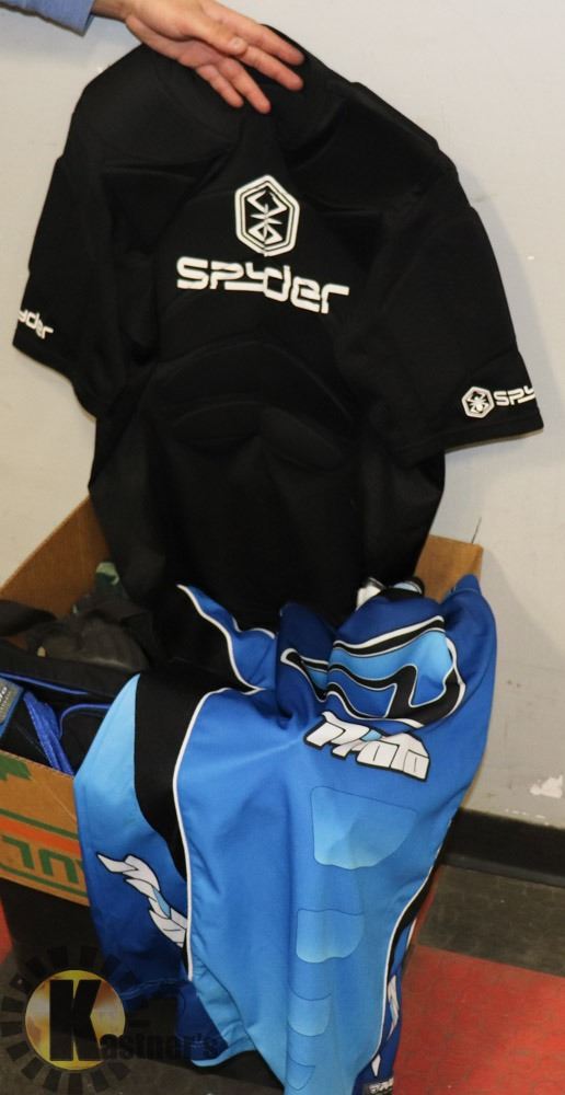 ALL MEN'S SIZE LARGE - INCL. PROTO PAINTBALL PANTS, JERSEYS, GLOVES, SPYDER BODY ARMOR JERSEY, ARM PADS, KNEE PADS, ETC. - GENERAL, OUTDOORS/SPORTS