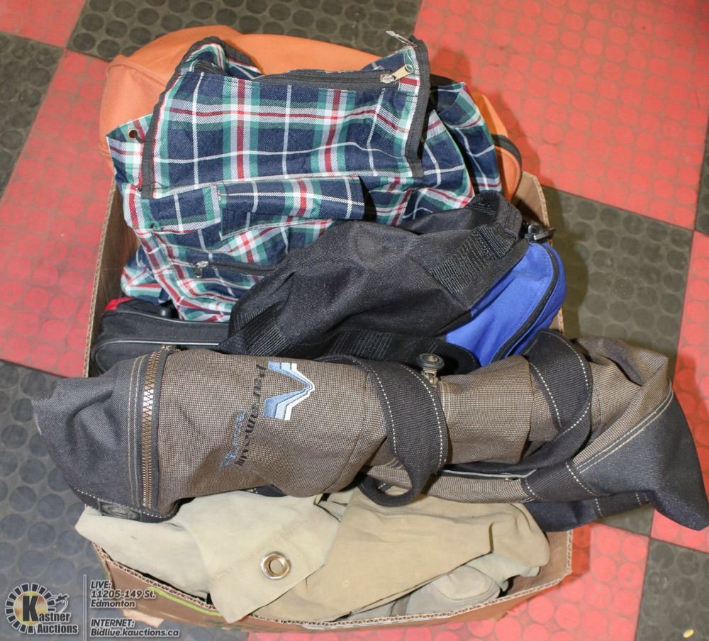 CANVAS BARREL BAG, BLACK/GOLD HOCKEY BAG, PLAID BEACH BAG, ETC.