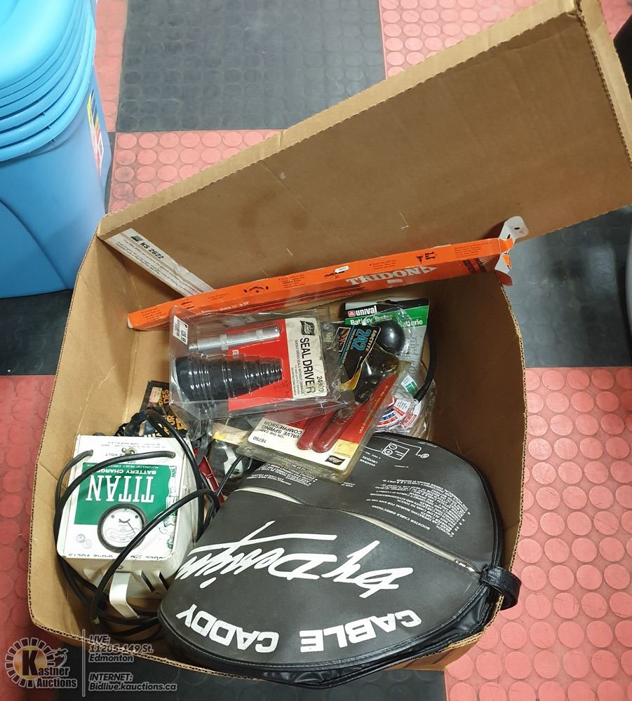 SUPPLIES - VALVE SPRING COMPRESSOR KIT, SEAL DRIVER KIT, BATTERY TESTER, TITAN 6V/12V BATTERY CHARGER, BOOSTER CABLE SET, ETC.