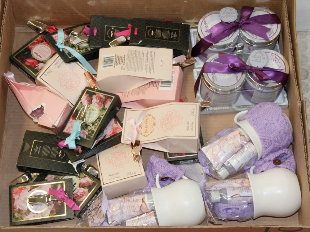 LARGE BOX OF BATH SALT GIFT SETS AND MORE